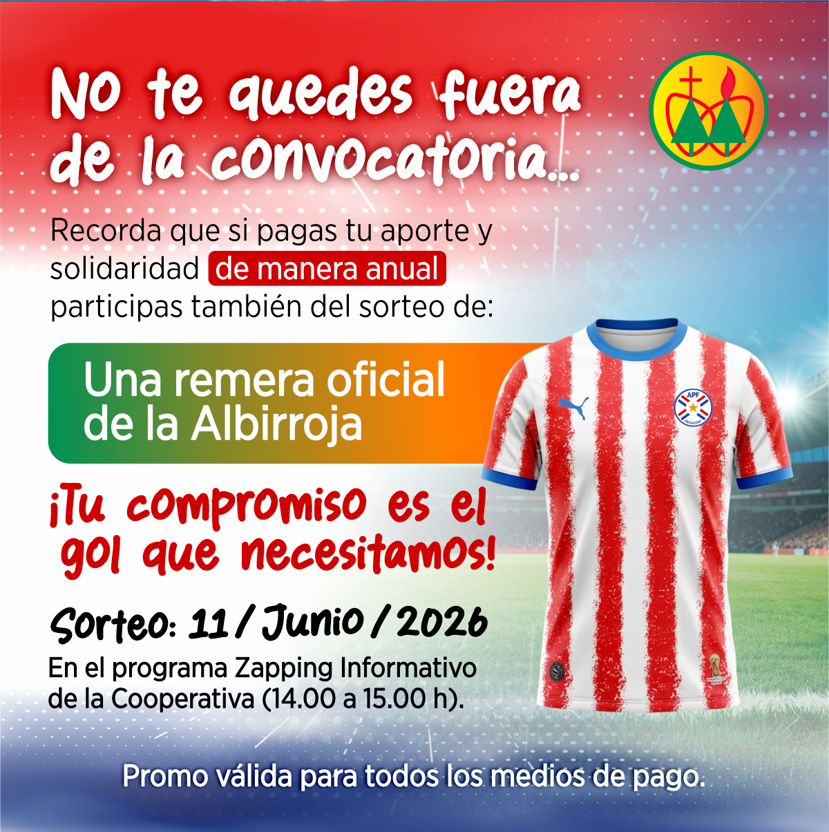 La promoción "¡Tus aportes, tus goles: viví el Mundial con la Albirroja!" es organizada por la Cooperativa Multiactiva Sagrados Corazones Ltda. La misma tendrá vigencia desde el 1 de enero de 2026 hasta el 11 de junio de 2026.